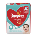 descrição e-commerce: pampers supersec fraldas descartáveis tamanho g 26 unidades