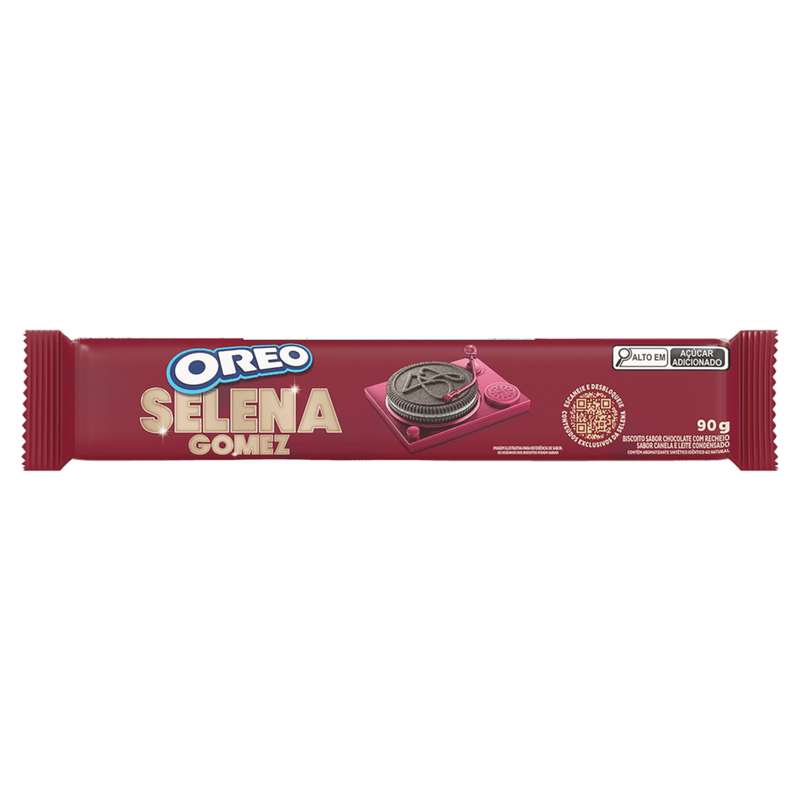descrição de marketing: oreo selena gomez é uma edição limitada criada com a artista feminina mais seguida e ouvida do mundo. um biscoito inédito de chocolate com recheio de canela e leite condensado para você se deliciar!